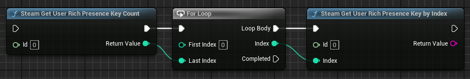 Gets the user's rich presence value stored for a given key. This should be used along side he Get User Rich Presence Key Count node to iterate over the available keys on this target user.