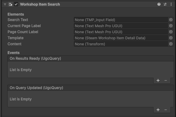 We have a prefab called "Workshop Item Search" that demonstrates this complete system, and that prefab is used in our sample scene. Consult the [installation guide](https://kb.heathen.group/steam/install/unity-install) for more information on how to find the prefabs and samples.