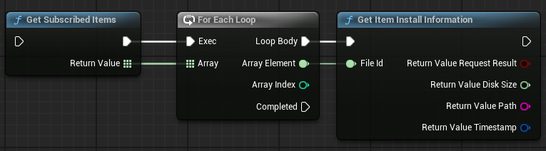 You can find the items the player has installed by using the "Search Subscribed" option when [listing items](#list-items). Accessing the content it downloaded however will require C# code and is up to your programmer to do.