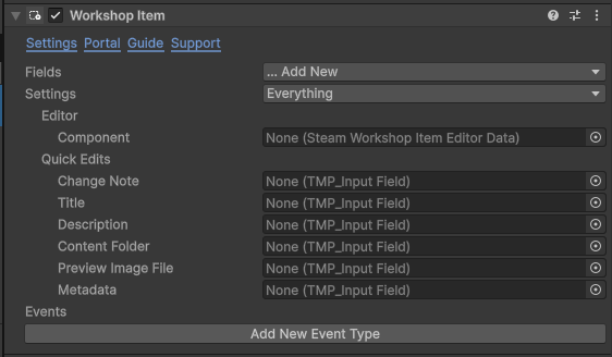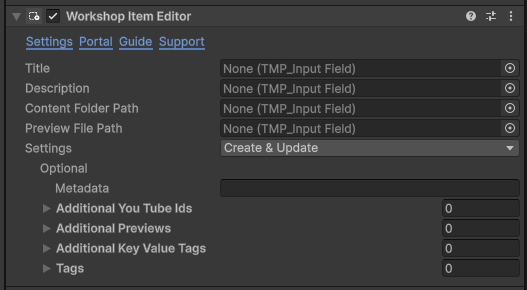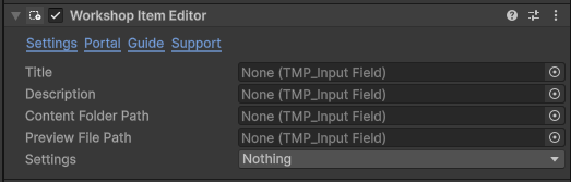 You can attach input fields for quick edits to modify the title, description, content folder, etc., or you can pass the item a Workshop Item Editor for a more robust set of features.